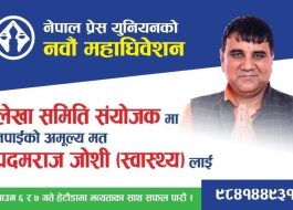 नेपाली कांग्रेसनिकट पत्रकारहरुको संस्था नेपाल प्रेस युनियनको लेखा समिति संयोजकमा पदमराज जोशी विजयी भएका छन्। मकवानपुरको हेटौंडामा जारी नवौँ महाधिवेशनको मतगणना अन्तर्गत लेखा समितितर्फको अन्तिम नतिजा आएको हो। जसअनुसार जोशीले ७१६ मत ल्याउँदै जित पक्का गरे। उनका प्रतिस्पर्धी कालिका महतले ६१५ मत ल्याउन सफल भइन्। लेख...